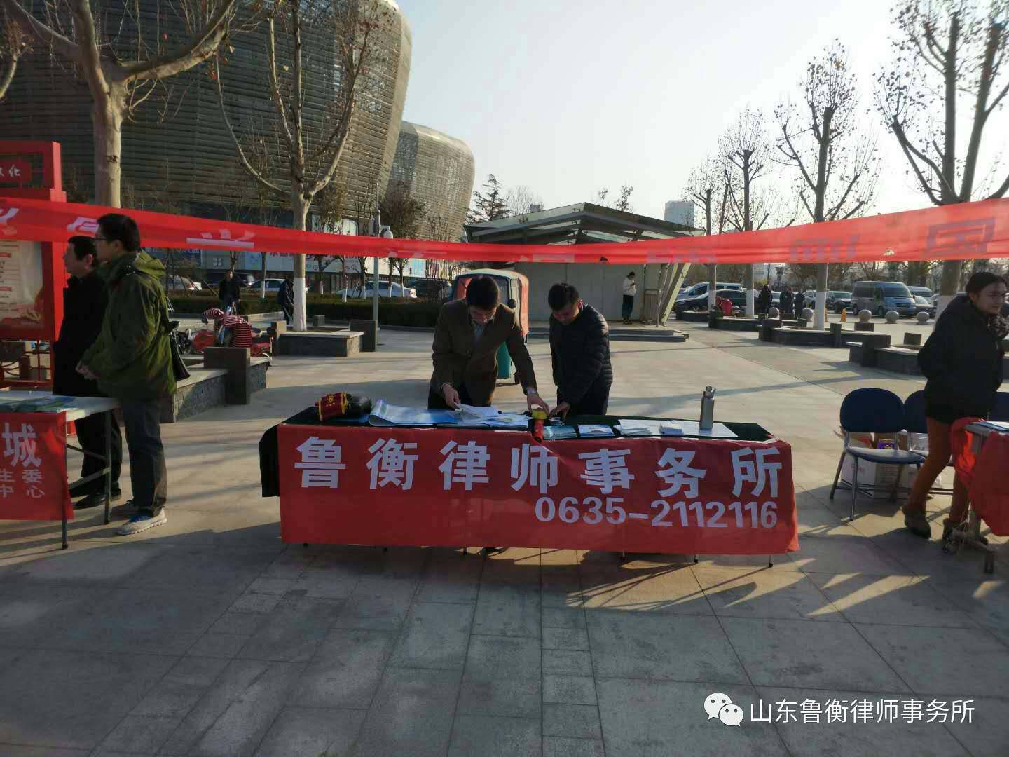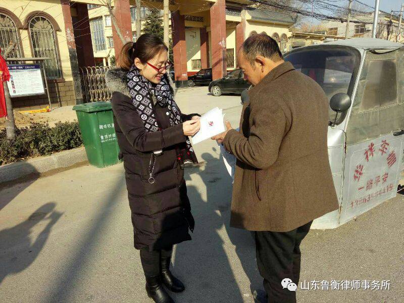 2017年12月4日在国家宪法日、全国普法宣传日到来之际,山东鲁衡律师事务所开展了系列普法宣传活动。鲁衡所律师兵分五路,分别奔赴聊城市人民活动中心、聊城市东昌府区闫寺街道办事处、聊城市经济技术开发区北城街道办事处、聊城市莘县、聊城市东阿县刘集镇五个宣传站点,开展普法宣传活动,向过往群众发放了法律知识宣传页,并热心为到访群众讲解答法律咨询。该活动受到群众的欢迎,得到市领导的肯定。鲁衡所将不忘初心,继续努力,继续为人民群众提供优质的法律服务。