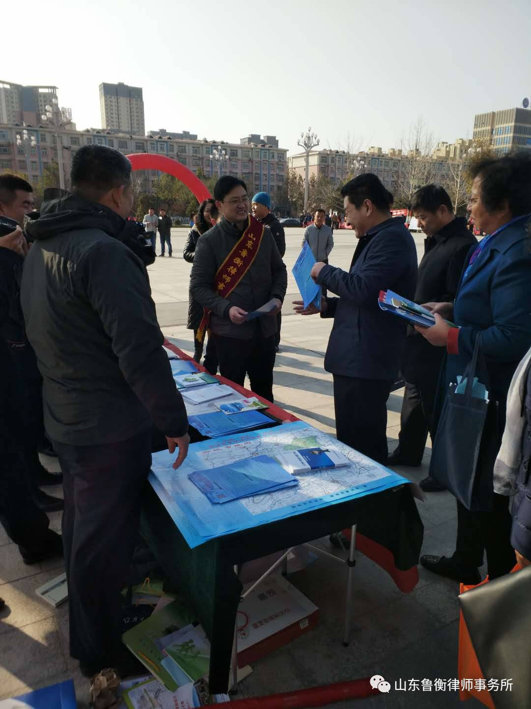 聊城市司法局常书彦局长来到鲁衡所宣传点,表场了在场的鲁衡律师,并和大家合影留念。