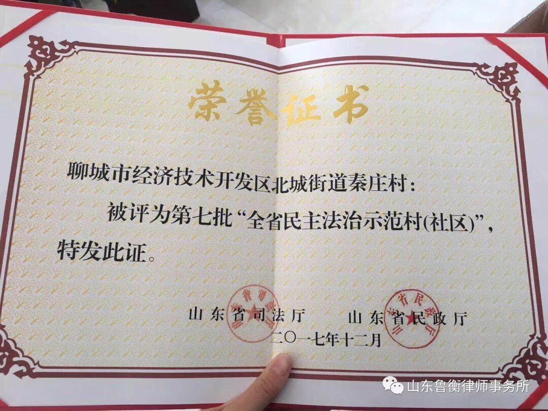 特别是在法治秦庄建设上,邀请鲁衡律师担任普法宣讲员,为村民上法治教育课,通过系列教育活动的开展,村民法治观念明显提升,近几年未发生一起违法上访案件和违法违纪案件。